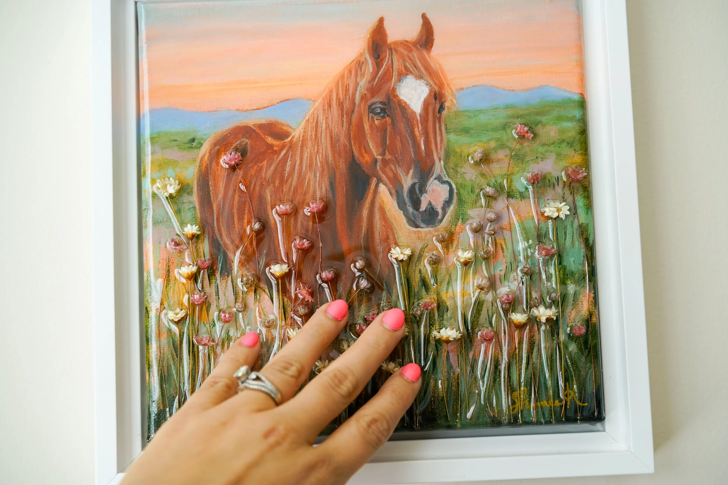 Fine artist, Shannia K, unveils the timeless beauty and warm comfort of nature in her innovative art collections. She delicately intertwines dried flowers with painted landscapes, crafting textured dimensional wall art. Each piece undergoes a meticulous process of painting, flower arrangement, and preservation under layers of glossy resin. Out of her paintings are born a desire to unplug and reconnect with the healing qualities of nature.